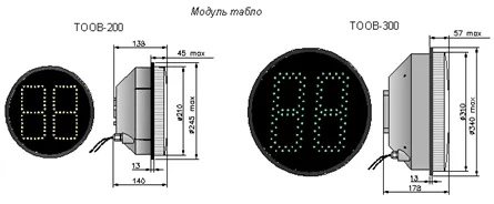 Конструктивно табло выполнено в корпусе светофорного излучателя Ø 200 и 300 мм и может быть установлено дополнительной секцией к стандартному корпусу светофора.По желанию потребителя изделие может поставляться в виде модуля табло (см. рисунок внешнего вида).